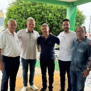Na declaração de apoio, Taiano estava acompanhado do próprio Palácio e de lideranças como os ex-prefeitos Terto Alcântara e Teca Lopes.